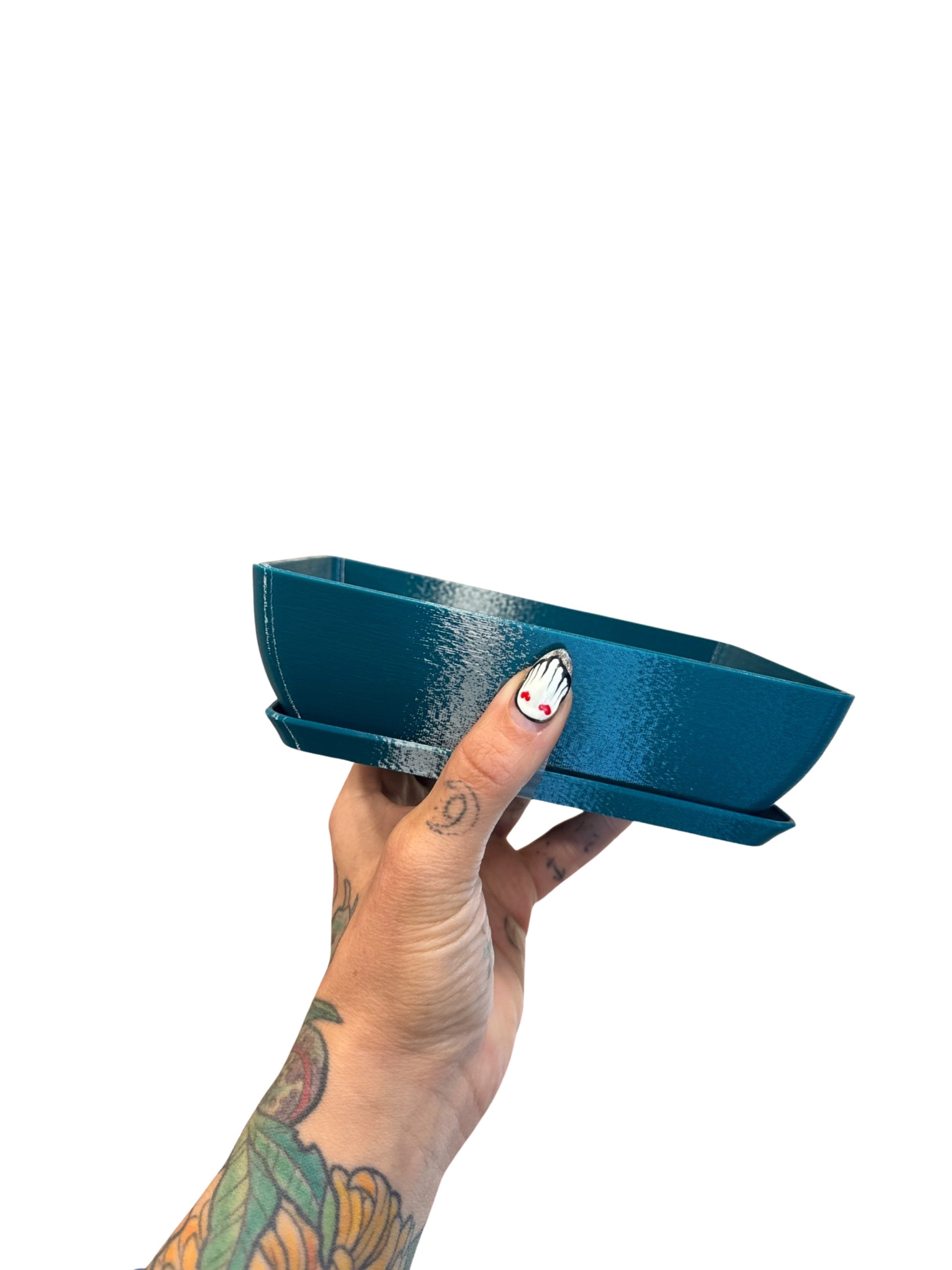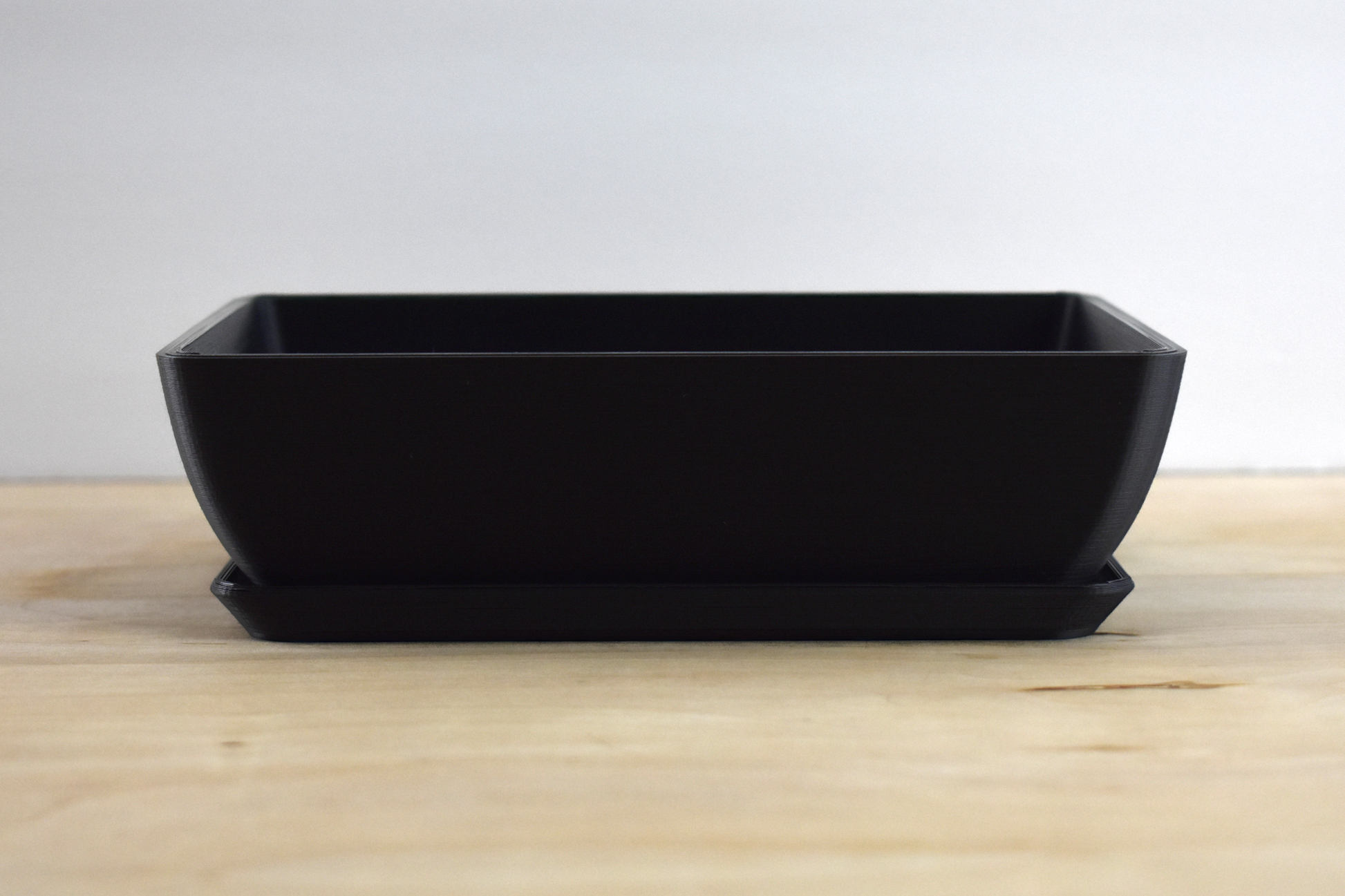 A GLU3D Prints exclusive - This designer pot is perfect for anyone wanting to show off their bonsai or succulent growing skills in a modern container. Features two large drainage holes with fitted mesh inserts that slot in place when adding soil.