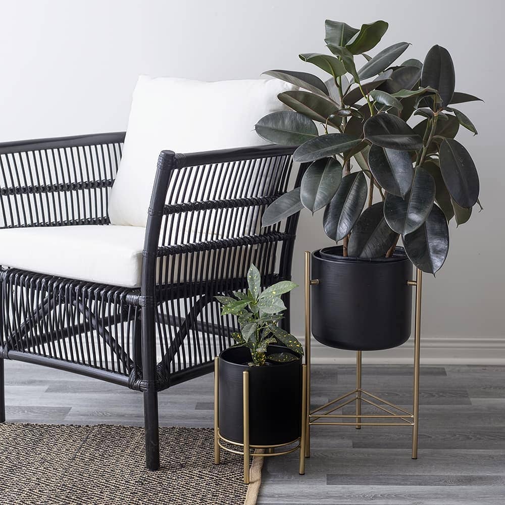 Introducing our elegant and stylish black and gold small floor planter - the perfect addition to any modern home decor. Crafted from high-quality metal materials, this planter boasts both durability and sophistication. Its sleek black finish and gold accents add a touch of luxury to your interior decor, while its large size provides ample space for displaying your favourite plants. Elevate your home with this must-have black and gold large floor planter today.