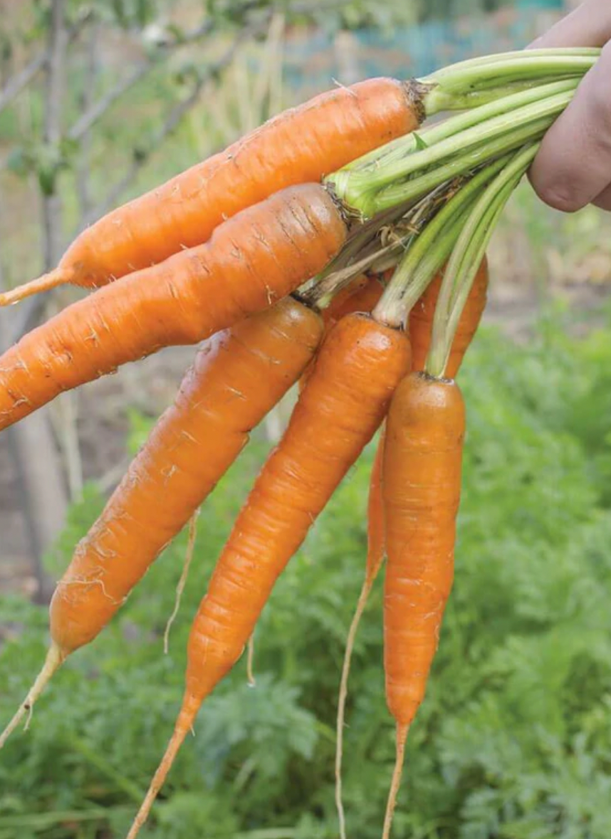 Growers and home gardeners alike will love this new hybrid nantes carrot for its resistance to breaking and tolerance of very late harvests. The roots are smooth and bright orange, growing to 18-22cm (7-9") in length. The tops are upright and strongly attached. Volcano carrot seeds have a high resistance to Alternaria, and intermediate resistance to Cavity Spot. Be sure to keep the carrot bed good and moist during the slow germination period, and then water as evenly as possible to prevent cracking. Loose soil and careful spacing are critical to growing perfectly straight, well formed roots. Read more on How to Grow Carrots.