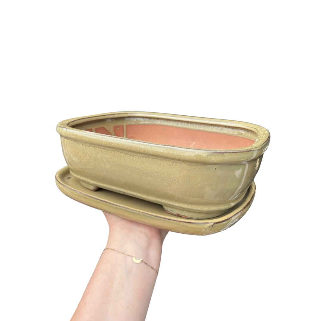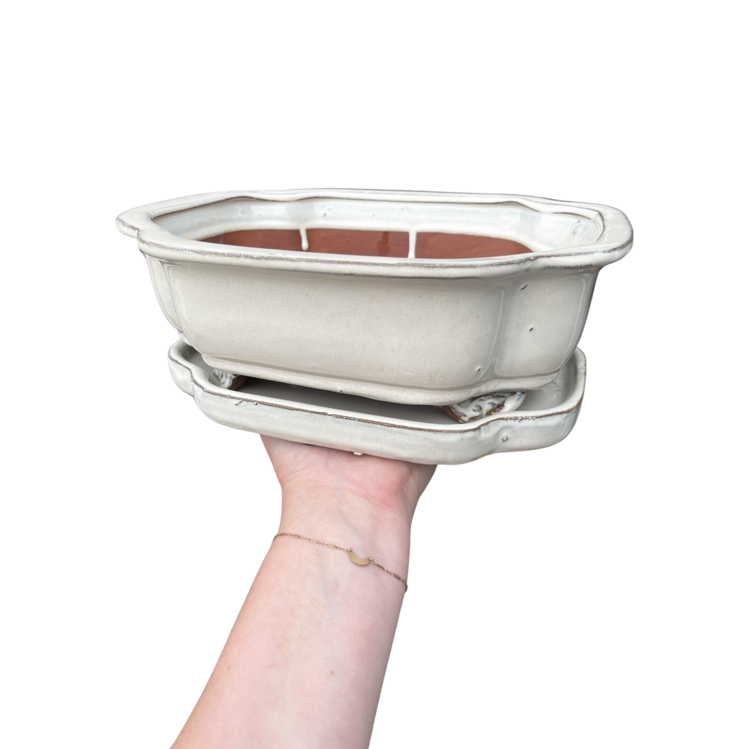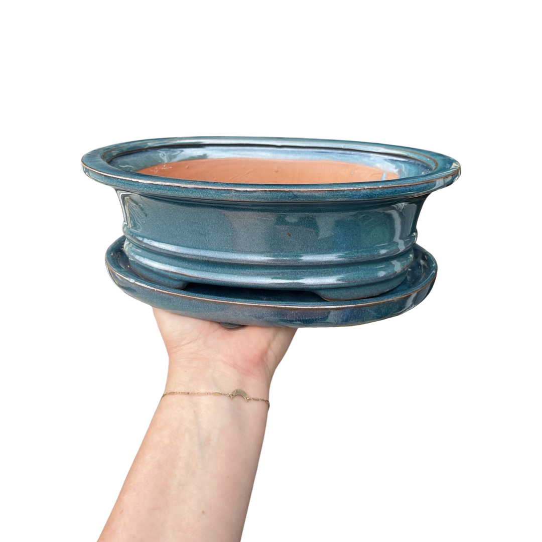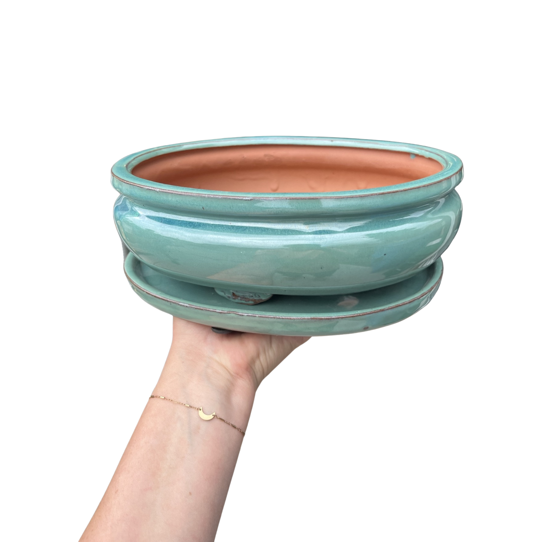 Various shapes of glazed ceramic pots and saucers. Great choice for bonsai, succulents, cacti or the like!