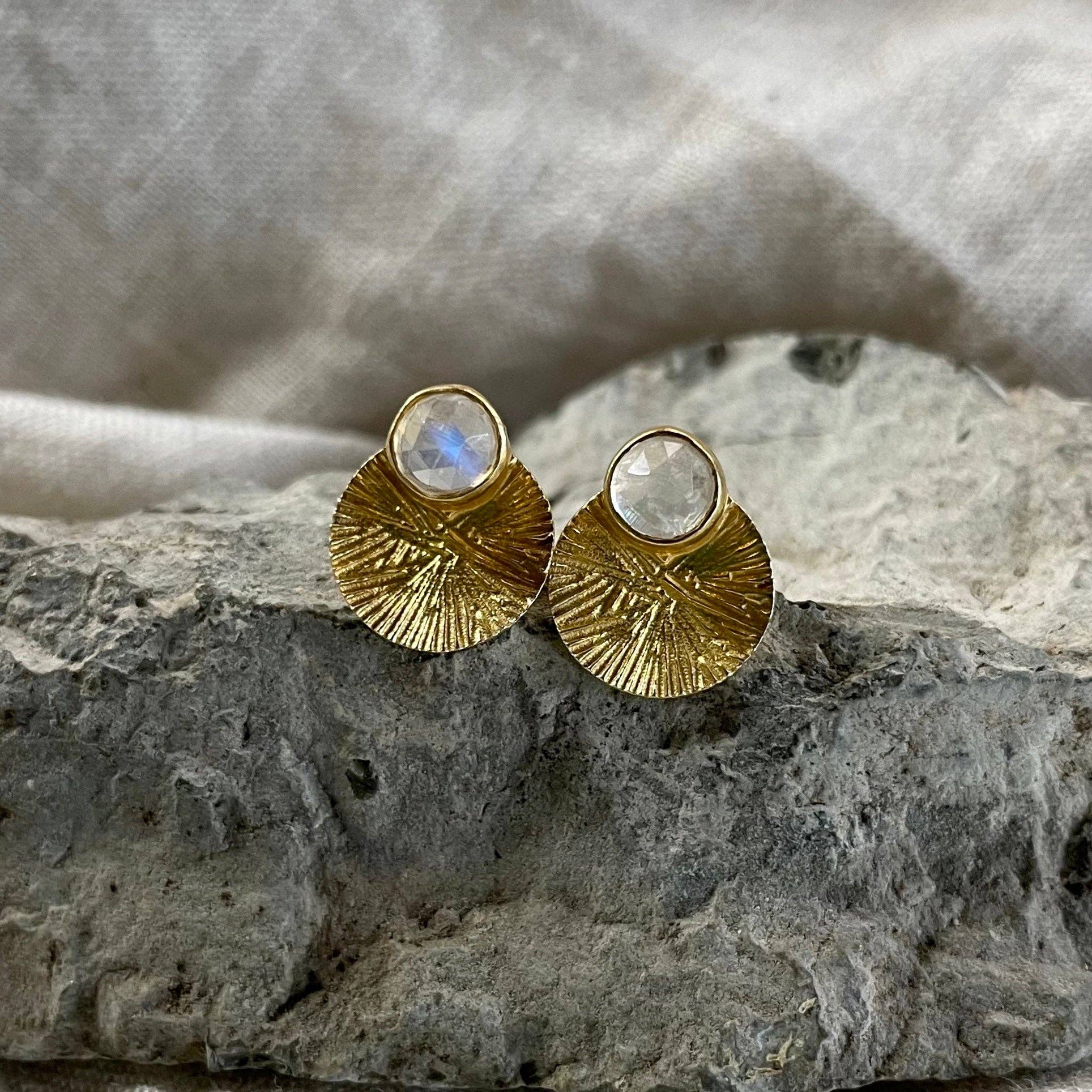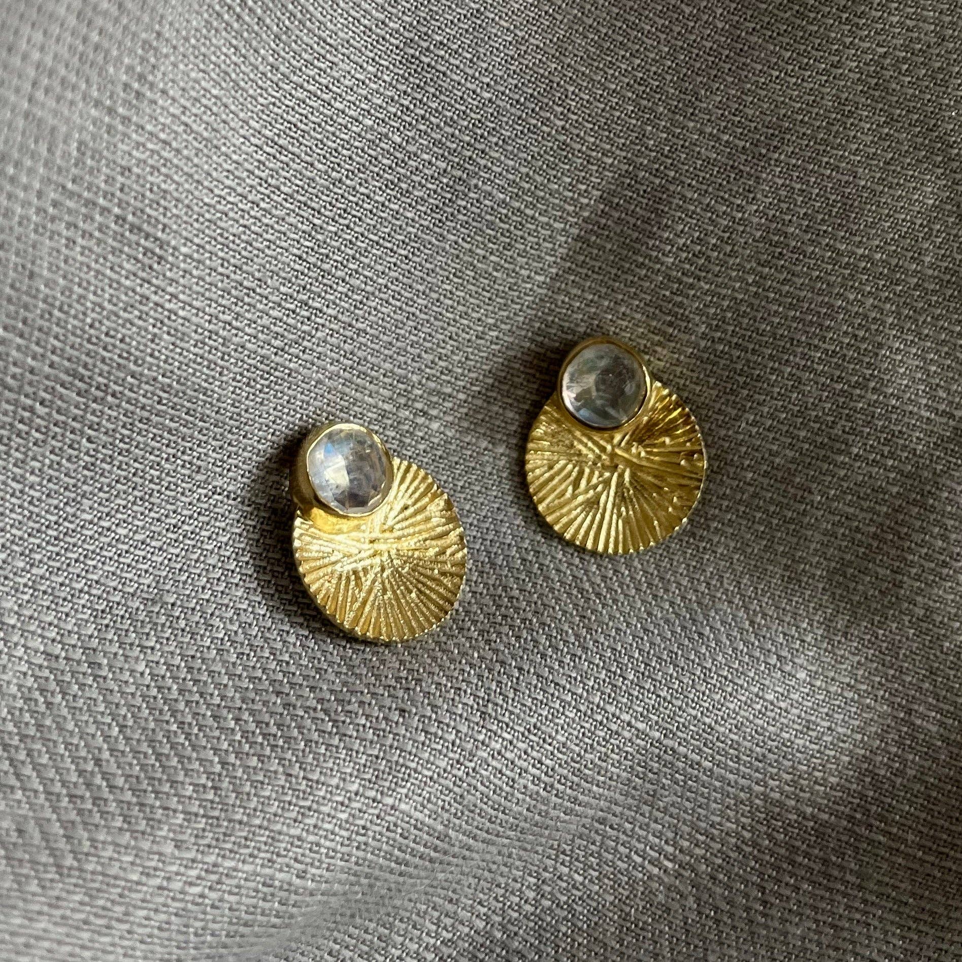 Dìon Earrings | Rainbow Moonstone & Gold
