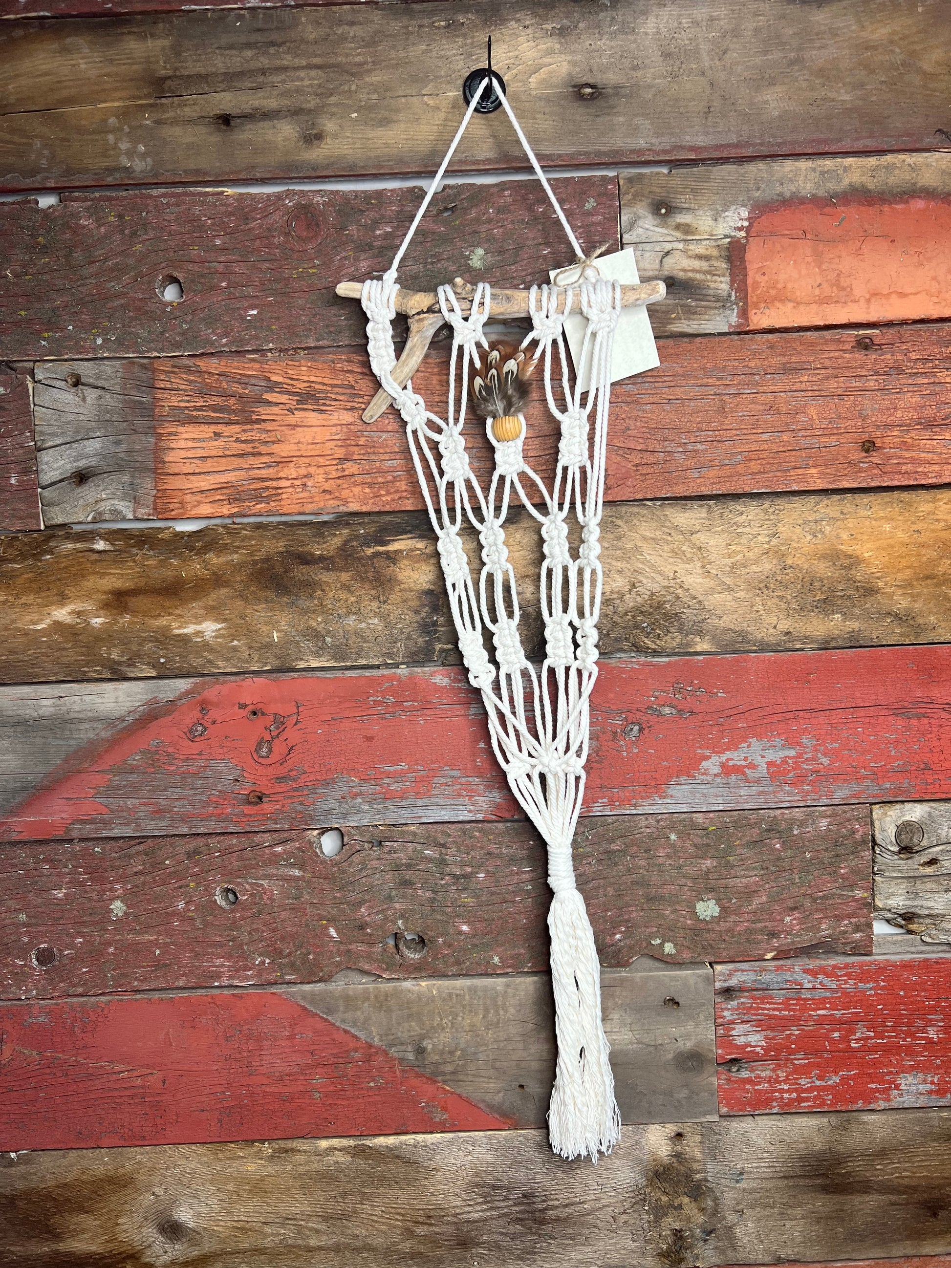 Handmade macrame in various sizes, colours, materials and designs. Each one is unique and made in Alberta. Smallest hangers are designed for airplants. Medium hangers fit 4" pots and the large fit 6-8" pots. If you have a specific pot you want to use bring it in and check for sizing.