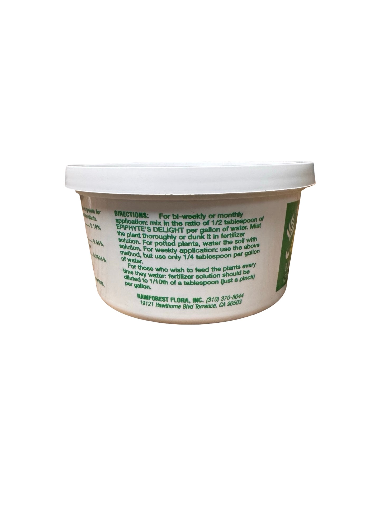 for biweekly or monthly application: mix in the ratio of half a tablespoon of Epiphyte’s delight per gallon of water. Missed the plant thoroughly or dunk it in the fertilizer solution. For potted plants water the soil with the solution. For weekly application: use the above method, but use only 1/4 tablespoon per gallon of water.