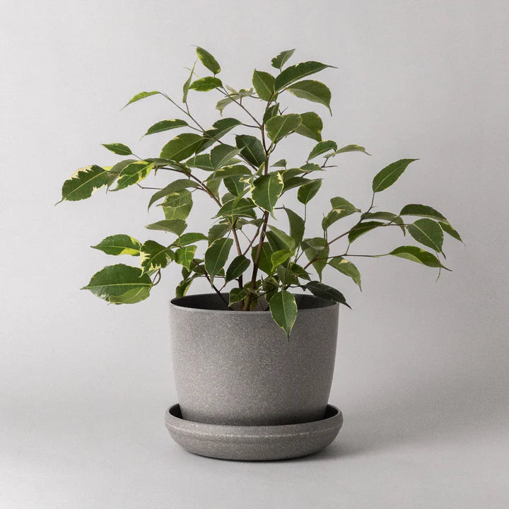 The 7” Wheat Husk Planters brings your favourite natural textures to a larger silhouette. The charcoal grey tone allows you to add balance to your space and maintain a neutral look by blending various shades together. For a simple look, pair with a Fiscus Triangularis.