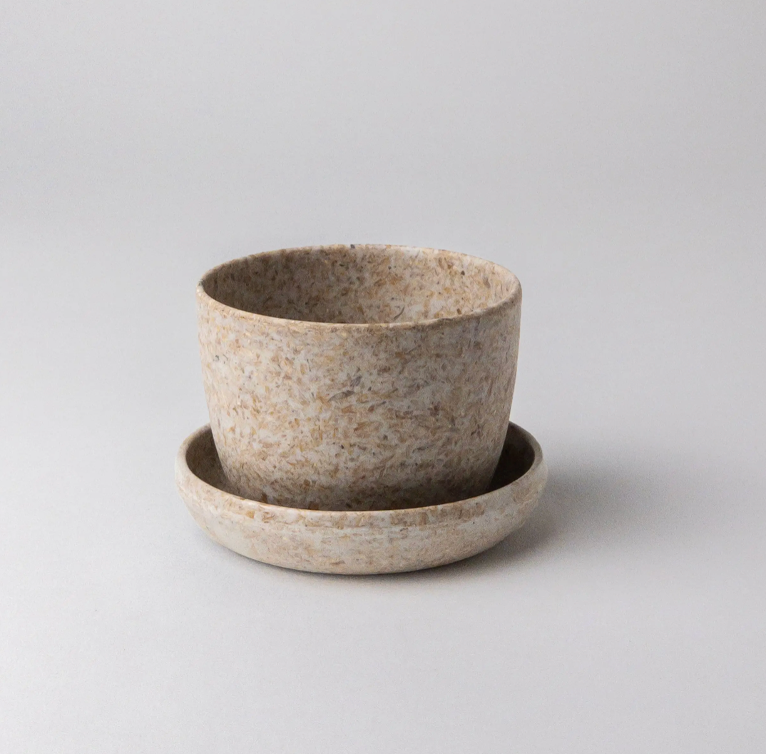 This durable and natural-looking plant container has been transformed from agricultural by-products and waste materials. Equipped with a drainage hole with a saucer, this mini pot is a perfect starter for plant beginners. Materials are wheat Husk or up cycled bamboo fibres with Non-Toxic Formaldehyde-Free Resin.