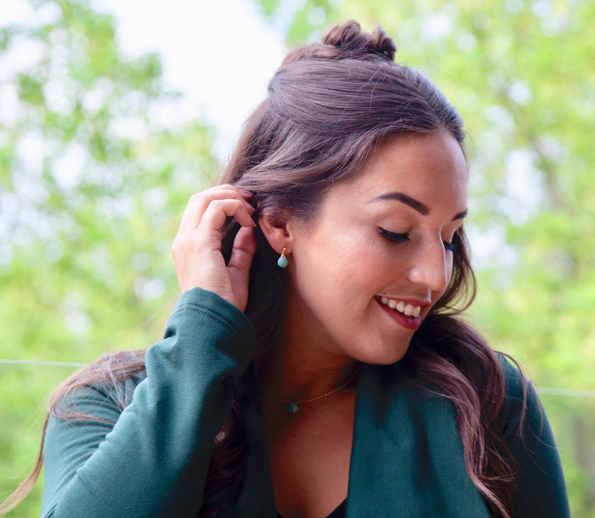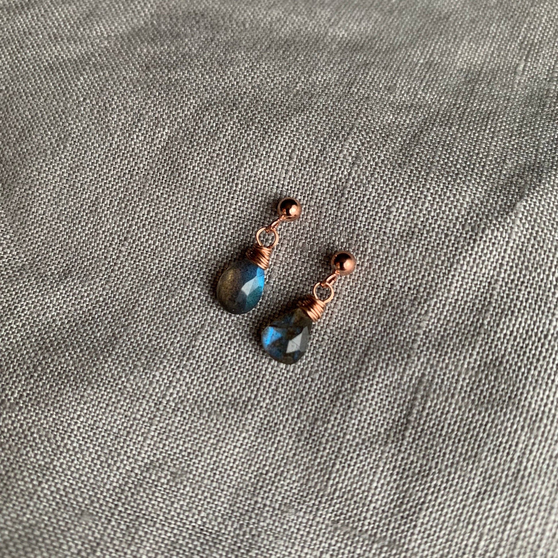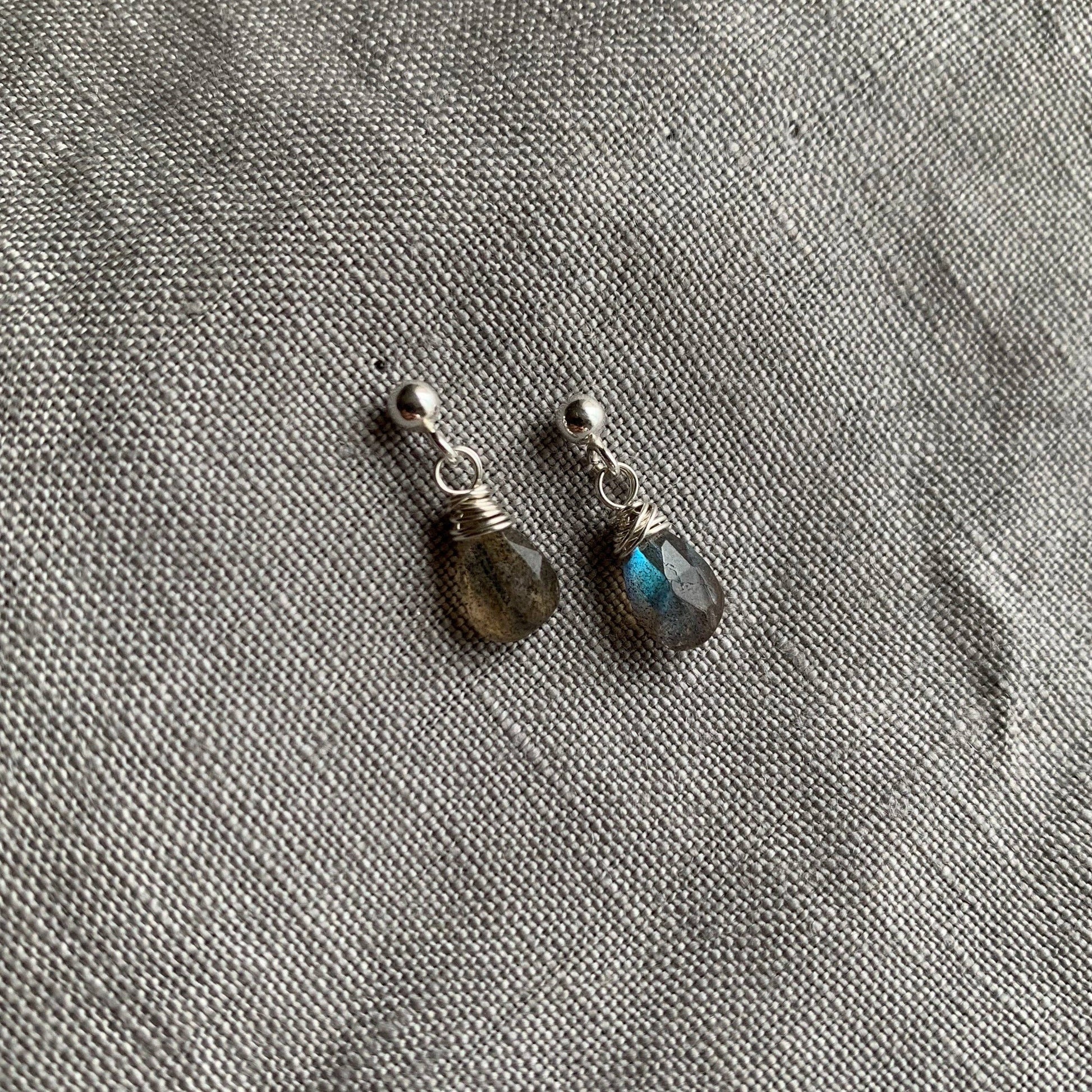 The sweetest little gemstone drop studs. Hand-wrapped in Sterling Silver, 14K Gold-Fill or Rose Gold-Fill.