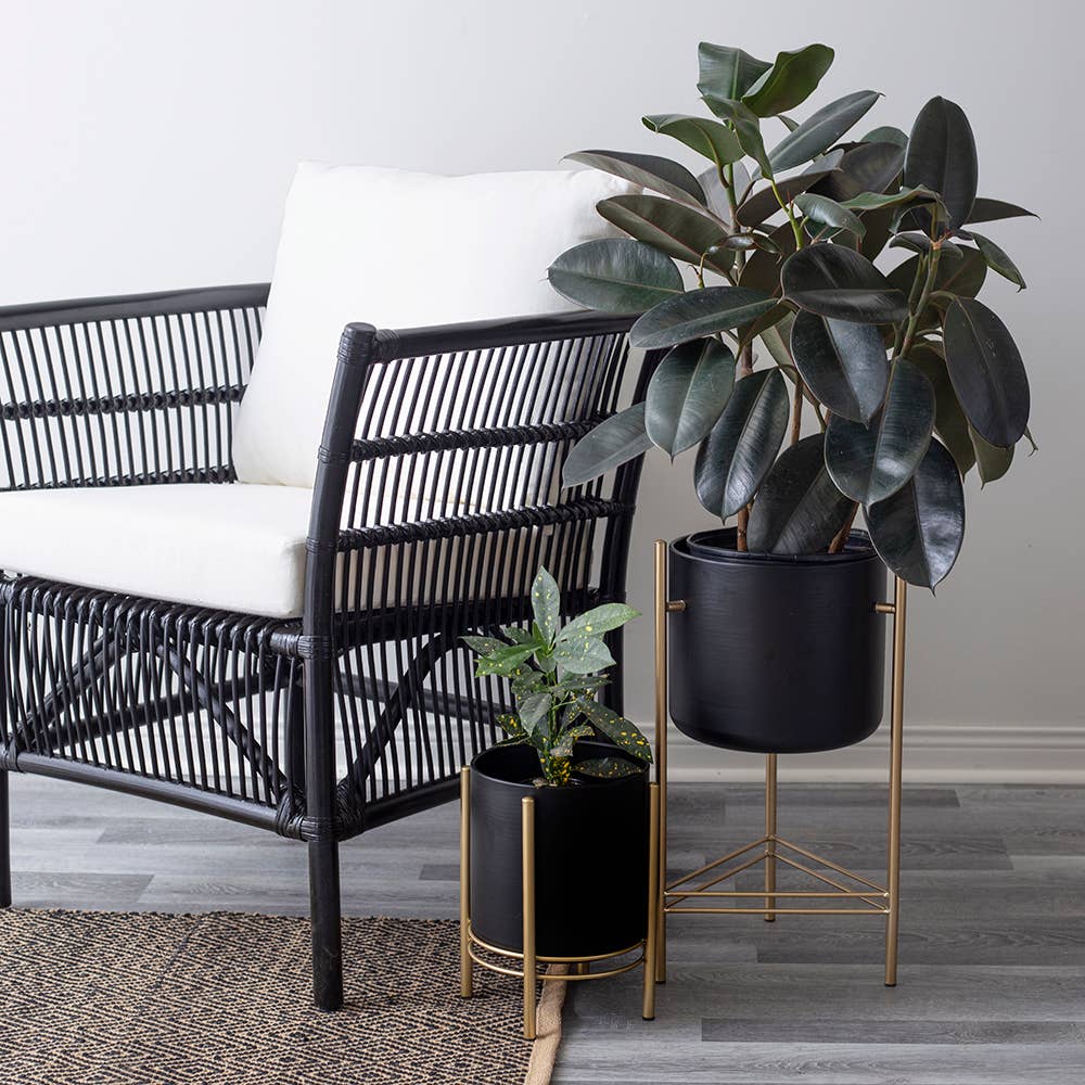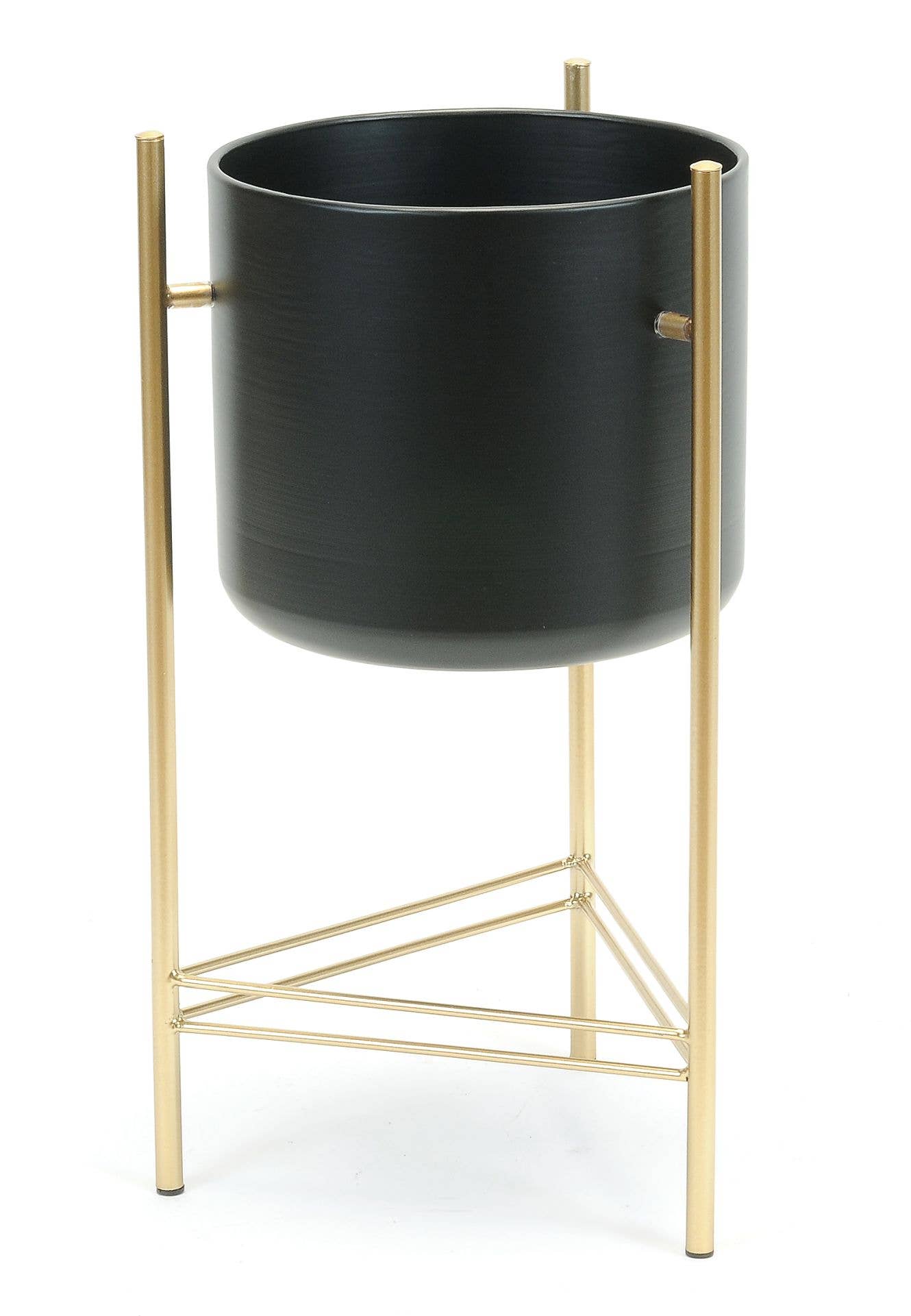 Make your houseplants into a style statement with this sleek and modern metal stand planter. This piece features a leak-proof spun-metal pot and a detachable gold metal stand.